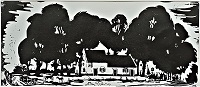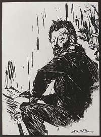 Ook te koop zijn de lino’s van de Hofstraat in Thorn (14 x 24 cm, 20 euro), Maria en Maria Magdalena onder het kruis (25 X 30 cm, 40 euro), de kleine prent Zomer aan de Heelderpeel (10 x 7 cm, 20 euro), een Piëta (25 bij 21 cm, 40 euro) en een Zelfportret uit 1962. In de kleine prent Heelderpeel portretteert Frans zijn vriend en collega Toon Klaver met zijn onafscheidelijke pijp. Het zelfportret is een detail van het affiche dat Frans in 1962 gemaakt heeft voor zijn tentoonstelling in het toenmalige gemeentehuis, nu het Kunsthuis Thorn. Die prent is 30 bij 22 cm en kost 40 euro.