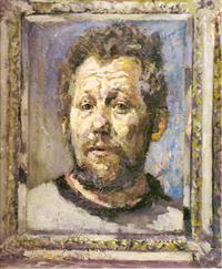In 1971 maakte Frans van den Berg dit zelfportret, waarin hijzelf aan een kritisch onderzoek lijkt te onderwerpen. Een stompje sigaret fungeert als lichtpuntje. Het kleine doek, 28 bij 48 cm is razendsnel en trefzeker van toets en opzet.