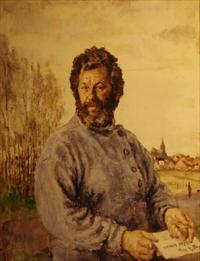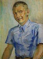 Rond 1936 schilderde de student Frans van den Berg dit zelfportret met blauw hemd. Dit schilderij is eind 2009 geschonken aan het Gemeentemuseum Het Land van Thorn.