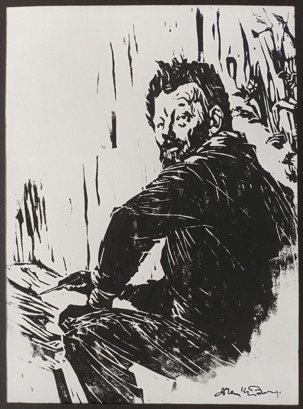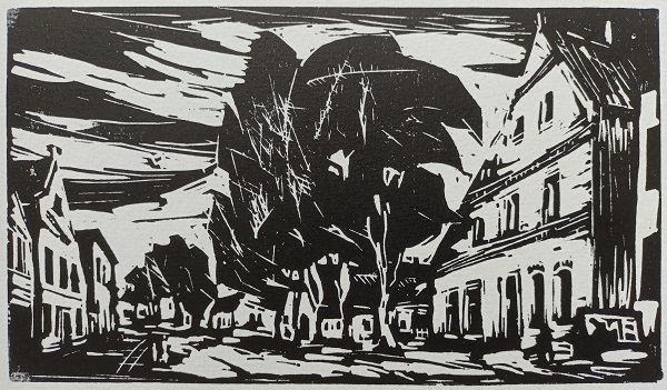 bedragen 10 euro. Frans van den Berg heeft vele tientallen lino’s