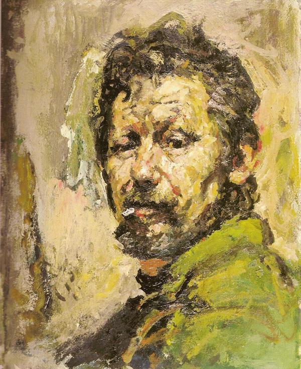 In 1971 maakte Frans van den Berg dit zelfportret, waarin hijzelf aan een kritisch onderzoek lijkt te onderwerpen. Een stompje sigaret fungeert als lichtpuntje. Het kleine doek, 28 bij 48 cm is razendsnel en trefzeker van toets en opzet.